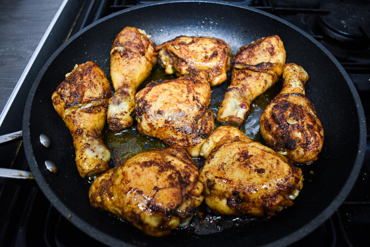 This brown stew chicken is savoury, a little sweet and full of bold Caribbean flavours. Every household makes it slightly different but the foundation is always the same. For this brown stew chicken recipe, the chicken is marinated, browned to give the chicken a golden brown colour then slow-simmered until the sauce thickens and the meat is soft.