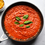This roasted tomato pasta sauce is simple, fresh and full of flavour, making it perfect for an easy weeknight dinner or a comforting weekend meal. The sauce is so easy to make and perfect for making ahead of time. Once you try roast tomato pasta sauce, you may never go back to jarred sauce again.