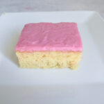 This recipe makes Tottenham cake which is a delicious traybake cake made using vanilla batter that is topped with a simple pink glaze icing.